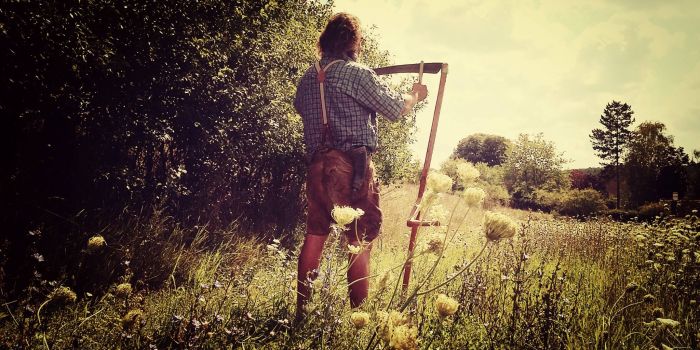 Ich wuchs auf einen kleinen Bauernhof auf, wo das Arbeiten mit der Sense und den Pferden zum Alltagsleben gehörte. So erlernten wir spielerisch das Mähen mit der Sense.